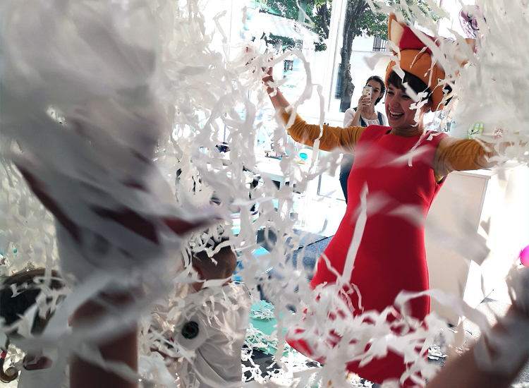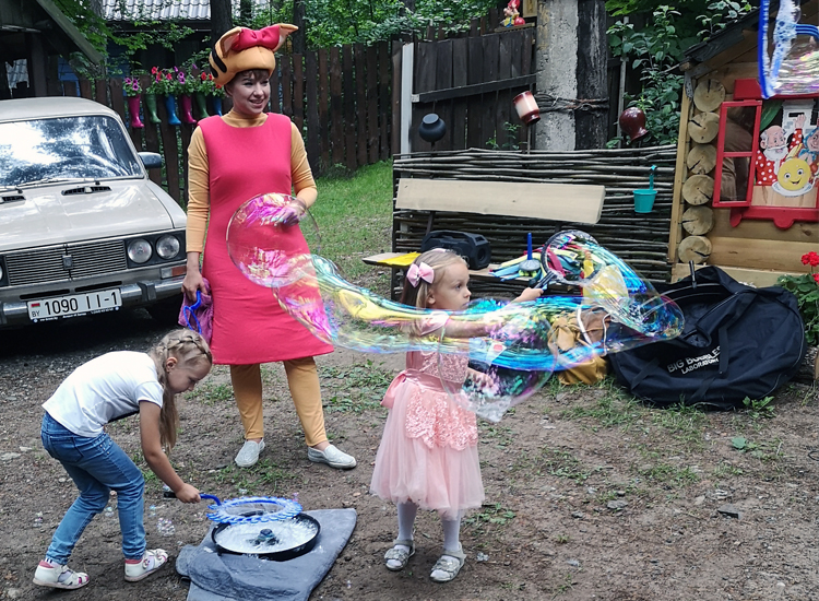 Программа включает активные конкурсы, танцы и игры, в конце каждый ребенок получает игрушку из шарика и наклейку с персонажем. Также мы бесплатно включаем в программу сокращенное шоу мыльных пузырей. Дополнительно можно заказать бумажную дискотеку.