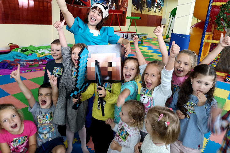 Если ваш сын настоящий любитель игры Майнкрафт, тогда наша программа станет лучшим подарком на его день рождения! Ребята вместе со Стивом попадут в кубический мир, примут участие в активных конкурсах и играх, а в конце их будет ожидать тематическая фотосессия с огромной головой Стива и алмазными мечом и киркой. Также включено сокращенное шоу мыльных пузырей и подарки для каждого ребенка (игрушка из шарика и наклейка). Это активная и насыщенная программа в стилистике Майнкрафта!