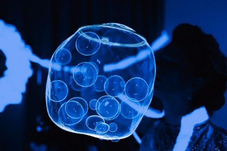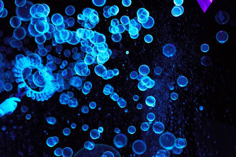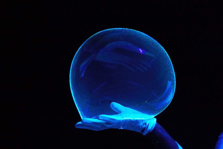 Шоу неоновых мыльных пузырей, светящихся в ультрафиолетовом свете)